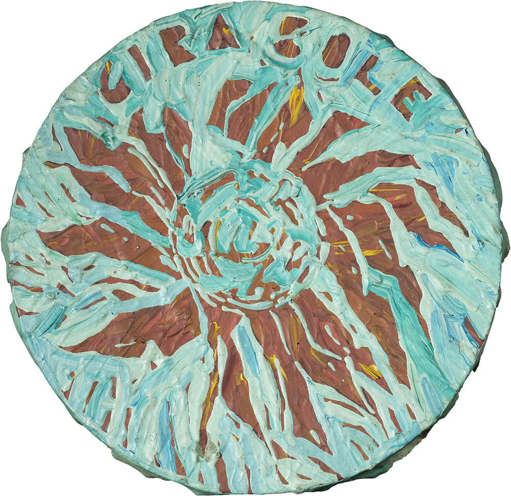 Aldo Mondino 1938 - 2005 Gira sole Tempera su tela Ø20 Titolo sul fronte...
