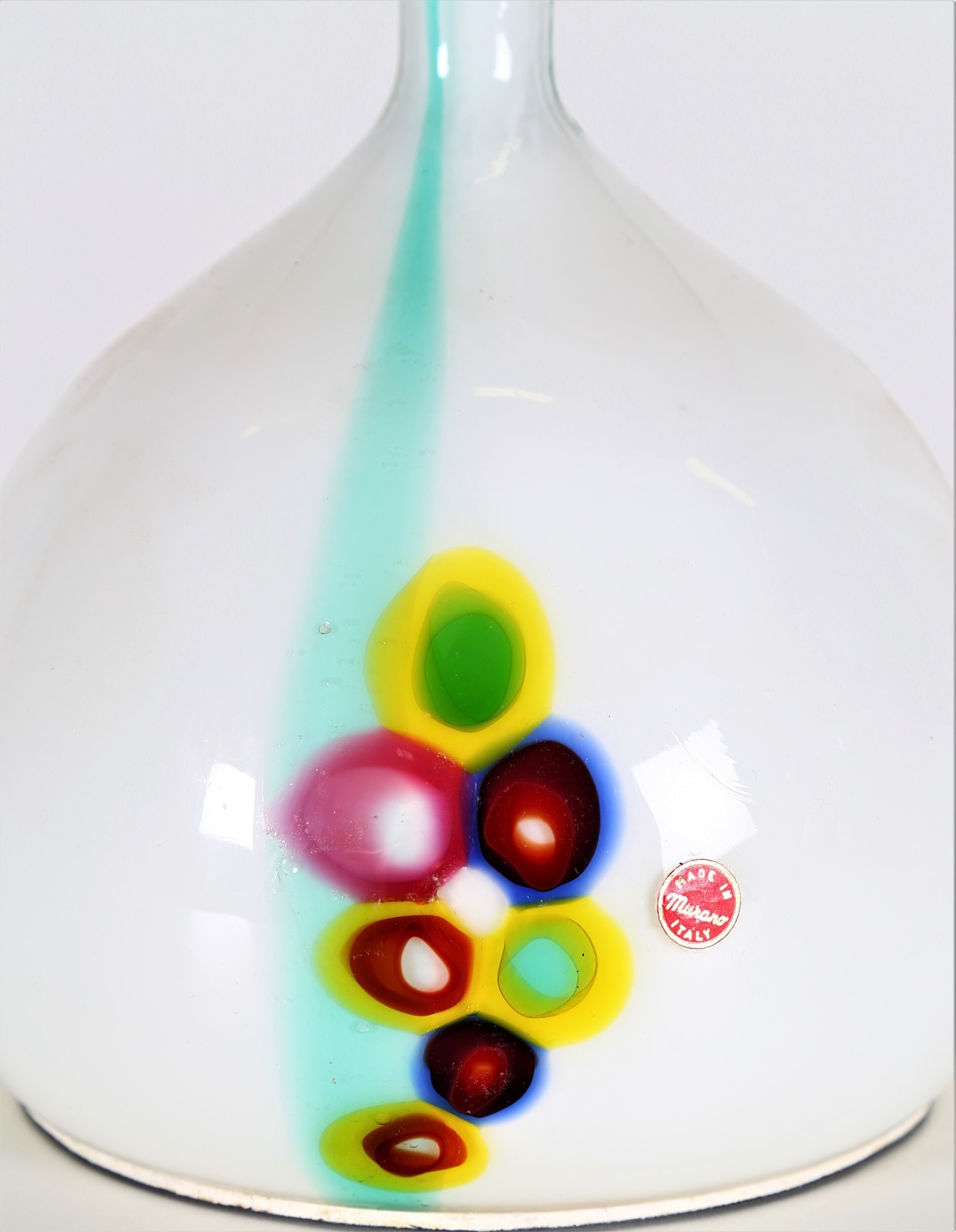 FUGA ANZOLO Lampada da tavolo. Vetro di Murano. Cm 35,00 x 56,00. Lampada da tavolo a murrina incatenata, anni '60, con paralume in nylon, per Avem Murano.