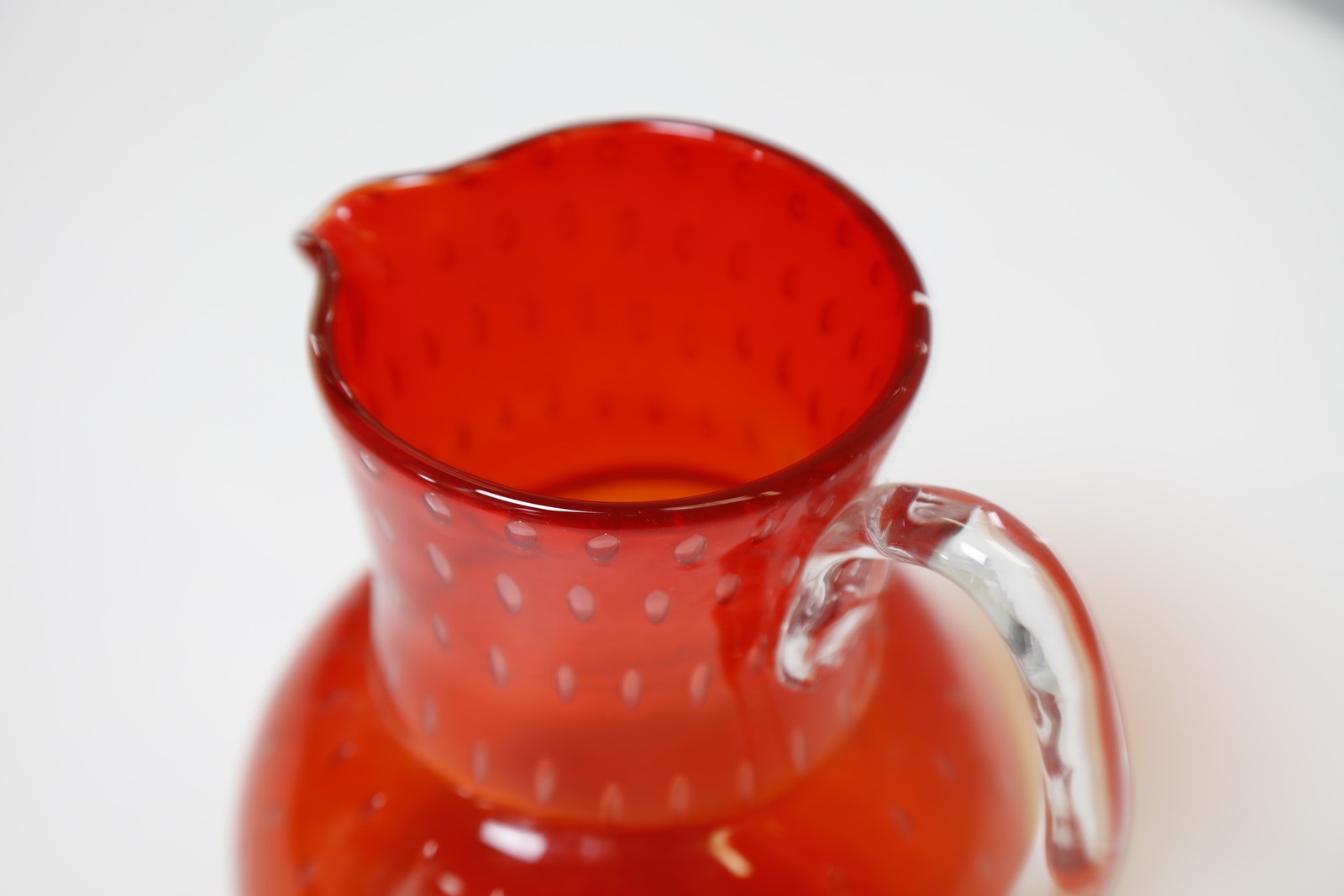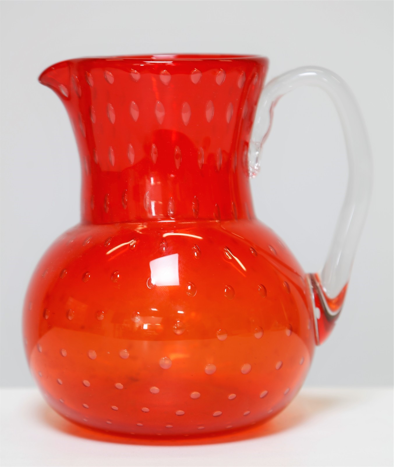 MANIFATTURA MURANO Brocca. Vetro di Murano. Cm 16,00 x 18,00 x 16,00. Brocca in vetro arancio a bollicine, anni ‘60