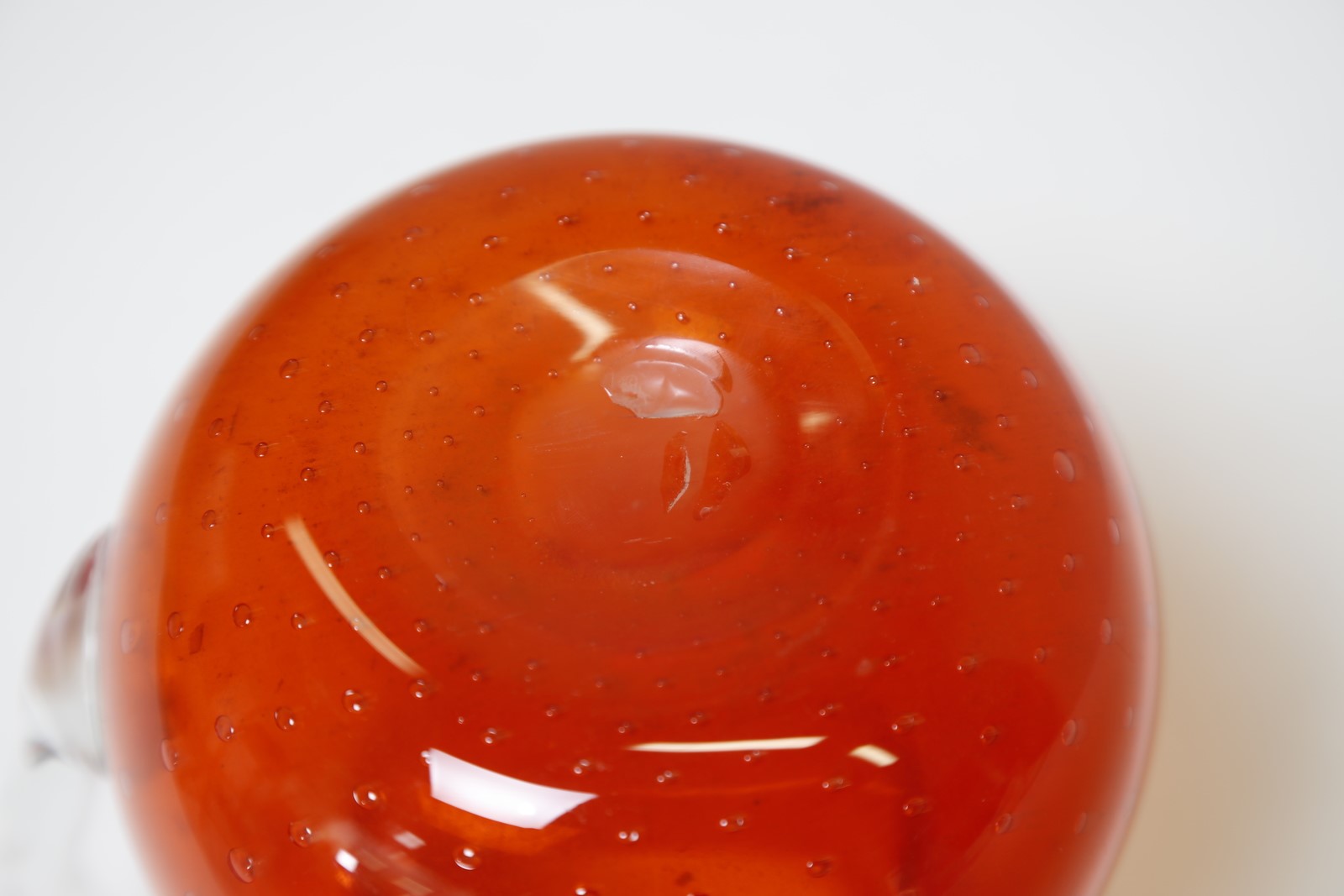 MANIFATTURA MURANO Jug. Murano glass. Cm 16,00 x 18,00 x 16,00. Orange glass jug with bubbles, 1960s