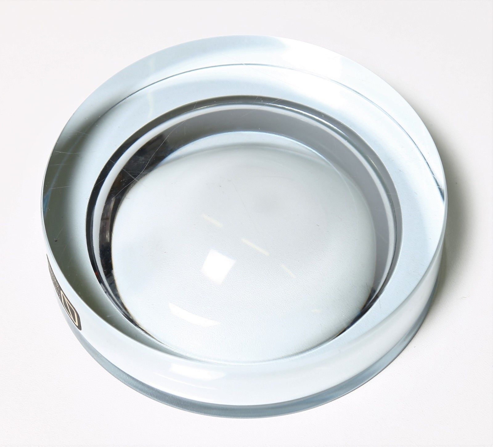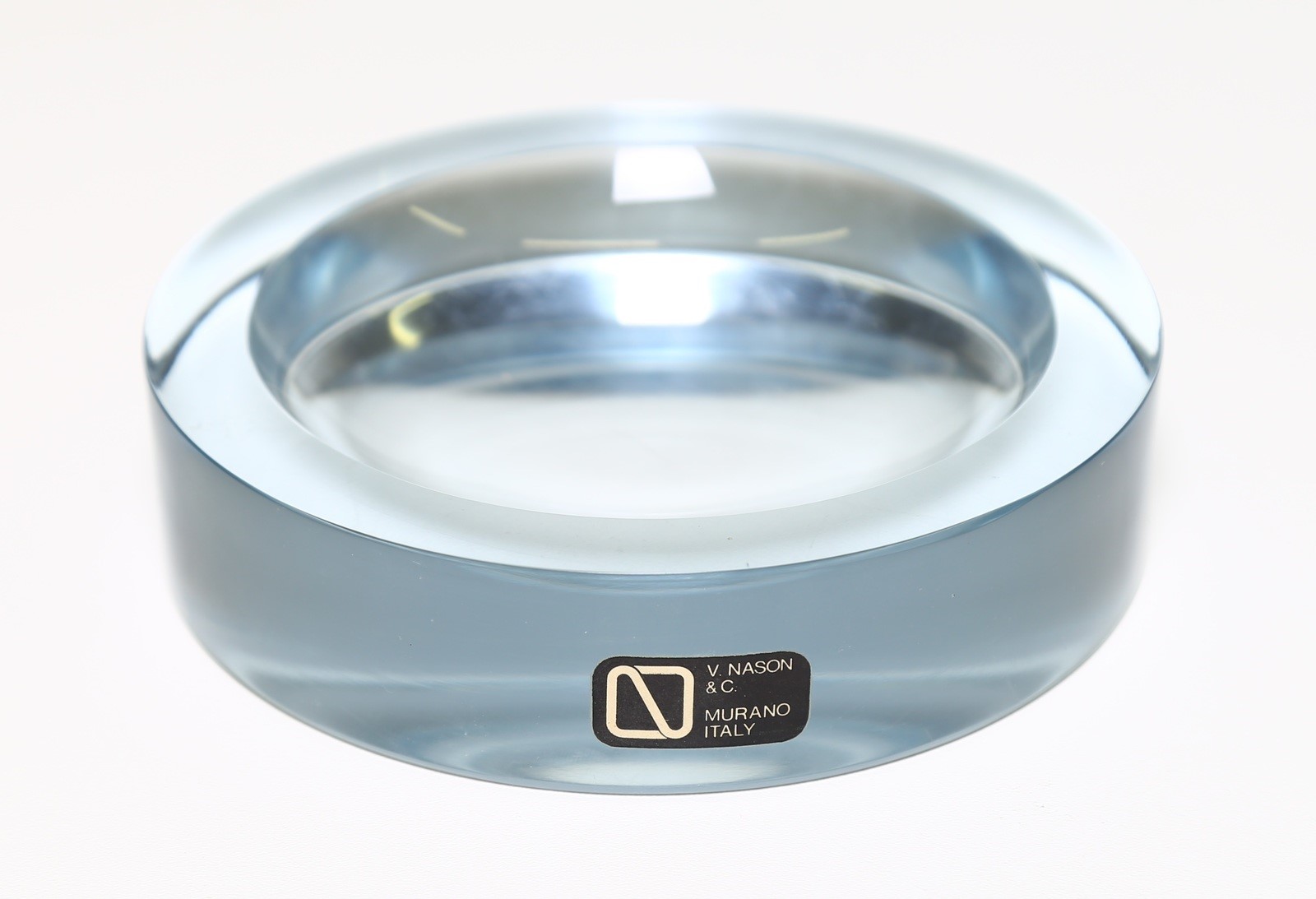 NASON CARLO (n. 1936) Pasacenere. Vetro di Murano. Cm 15,00 x 4,00 x 15,00. Vetro di Murano massello, per Mazzega, anni 70. Etichetta presente.