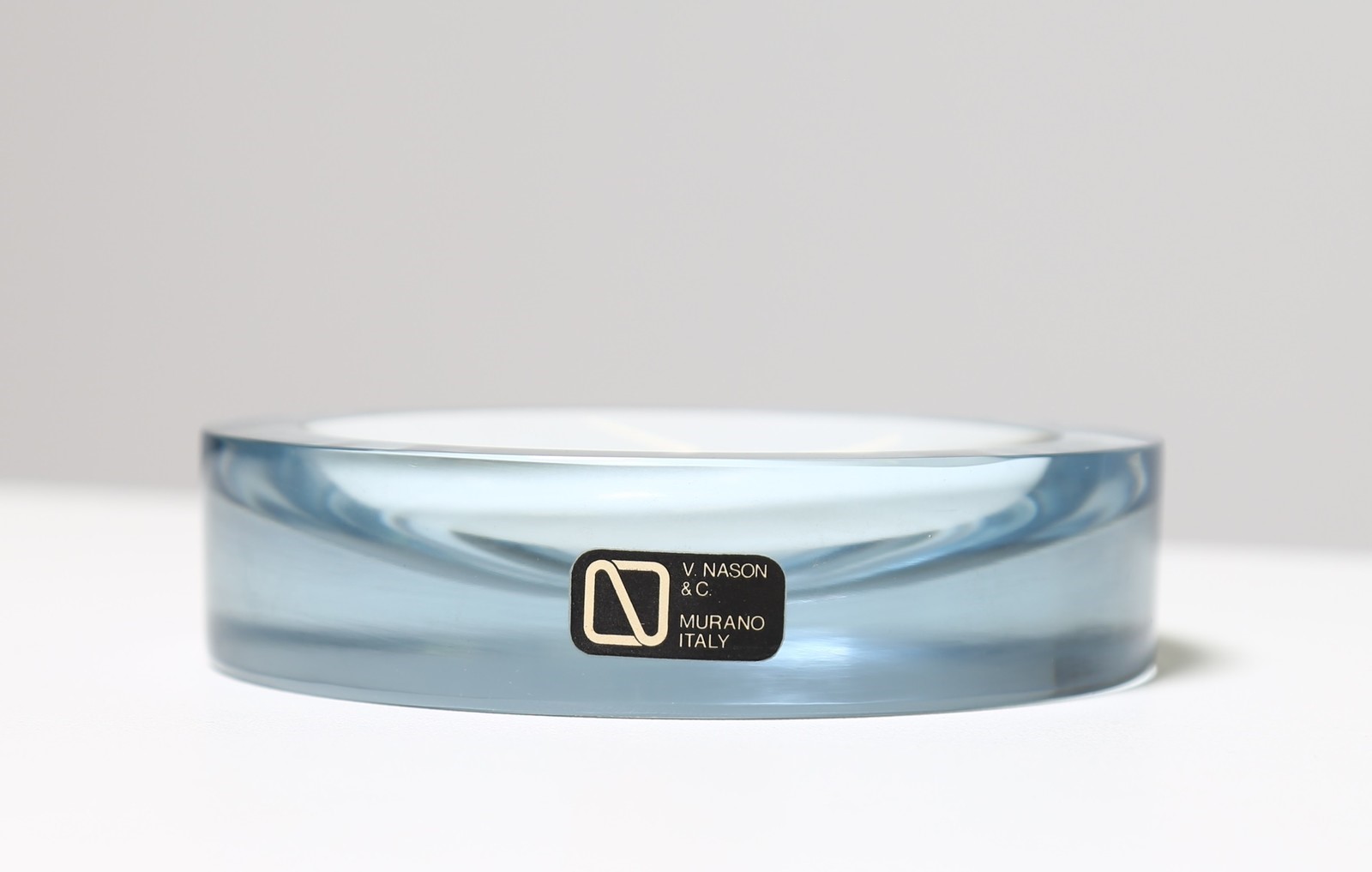 NASON CARLO (n. 1936) Ashtray. Murano glass. Cm 15,00 x 4,00 x 15,00. Solid Murano glass, for Mazzega, 70s. Present label.