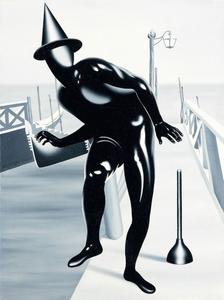 Gian Marco Montesano & Marc Kostabi Torino 1949 e Los Angeles 1960 The venetian frogman, 2004 Olio su tela, cm. 60x45 Firma e data sul lato sinistro: Kostabi 2004; al verso sulla tela: Mark / Kostabi / The venetian frogman / 2004 / 7-20-04-Cellular Therapy.