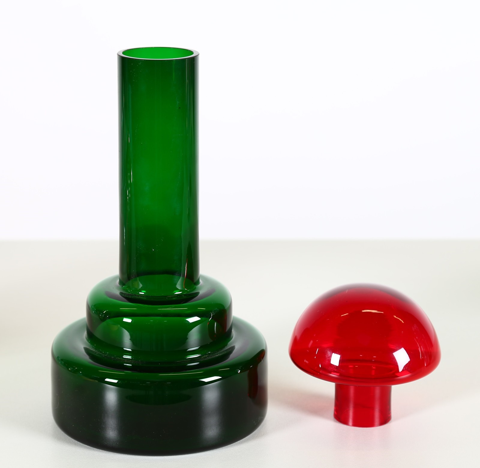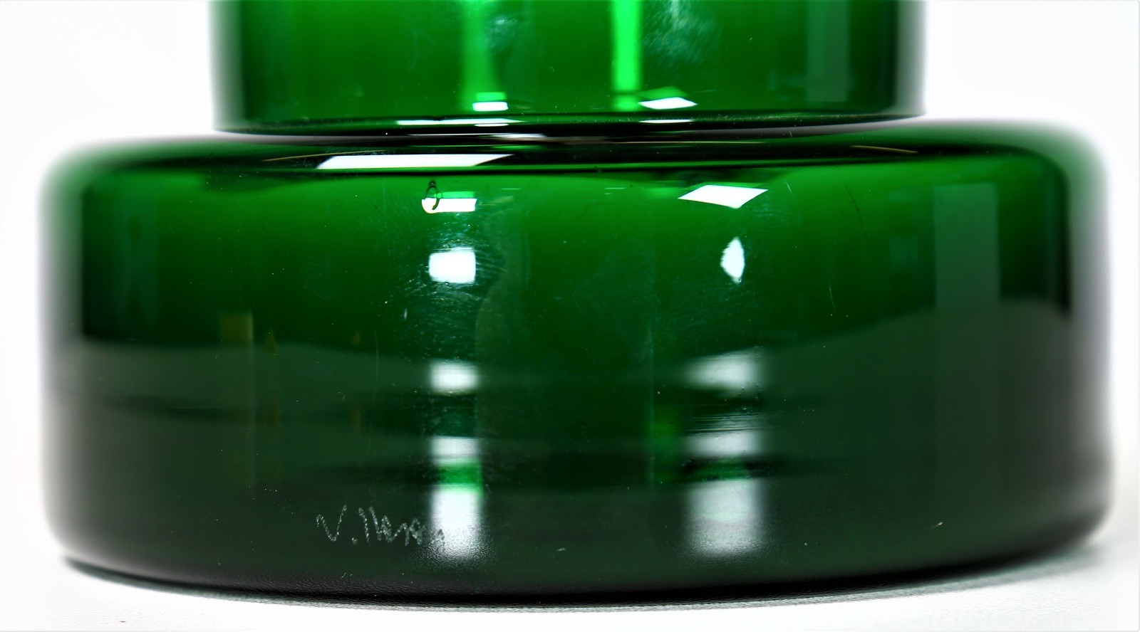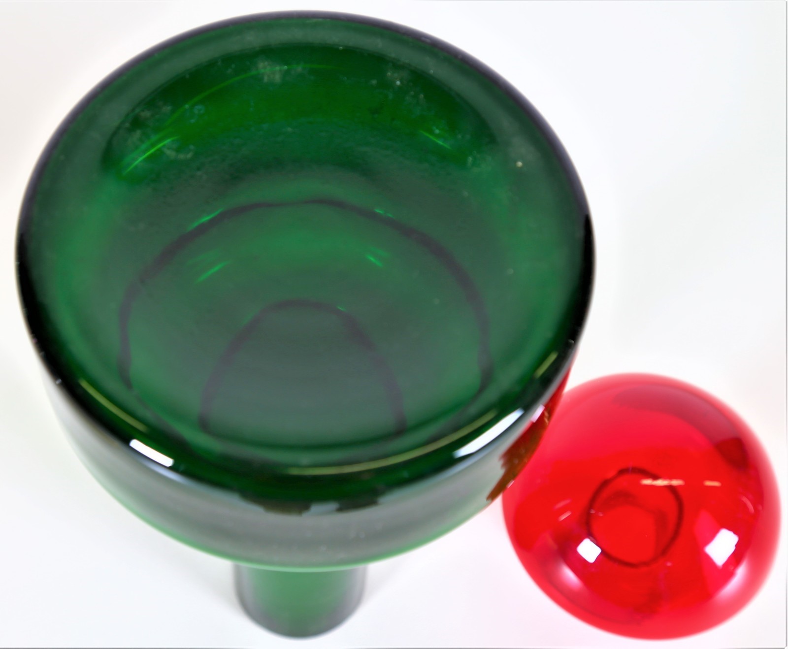 NASON VINCENZO Bottiglia in vetro con tappo. Vetro di Murano. Cm 14,00 x 30,00 x 14,00. Bottiglia in vetro con tappo, per Vincenzo Nason & Cie, fine anni 70