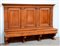 Antica panca da chiesa in noce con schienale alto a tre pannelli divisi da...