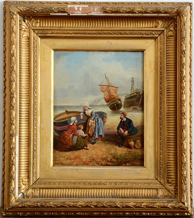Thomas F. Burn (Attivo tra 1860 e 1880 0)"A happy family" olio su tavola (cm...