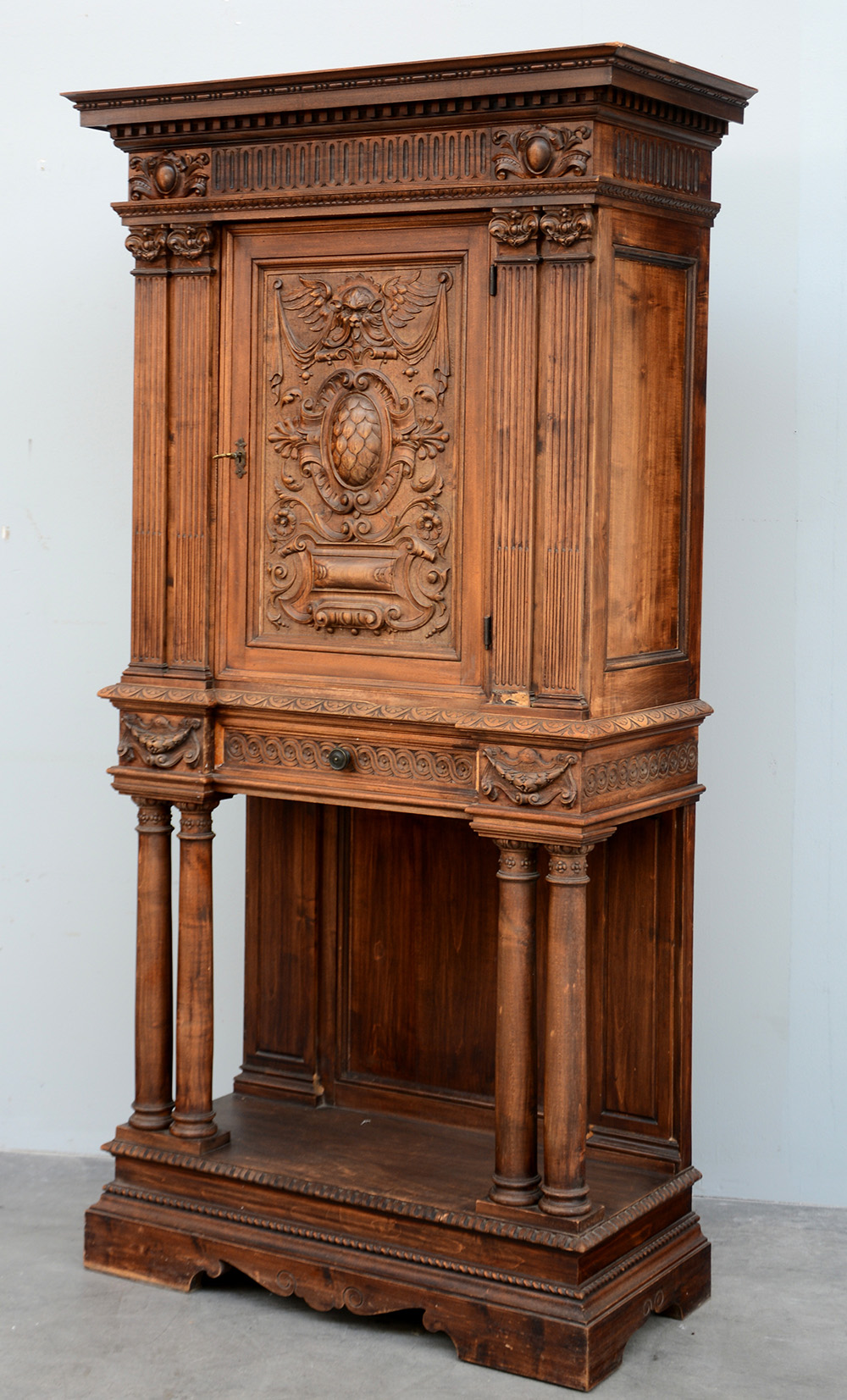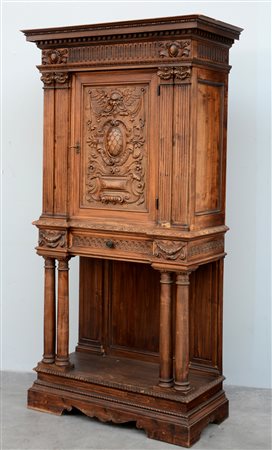 Stipo in stile rinascimentale con uno sportello e un cassetto sorretti da doppie colonnine (cm 94x180x45) (difetti e mancanze)