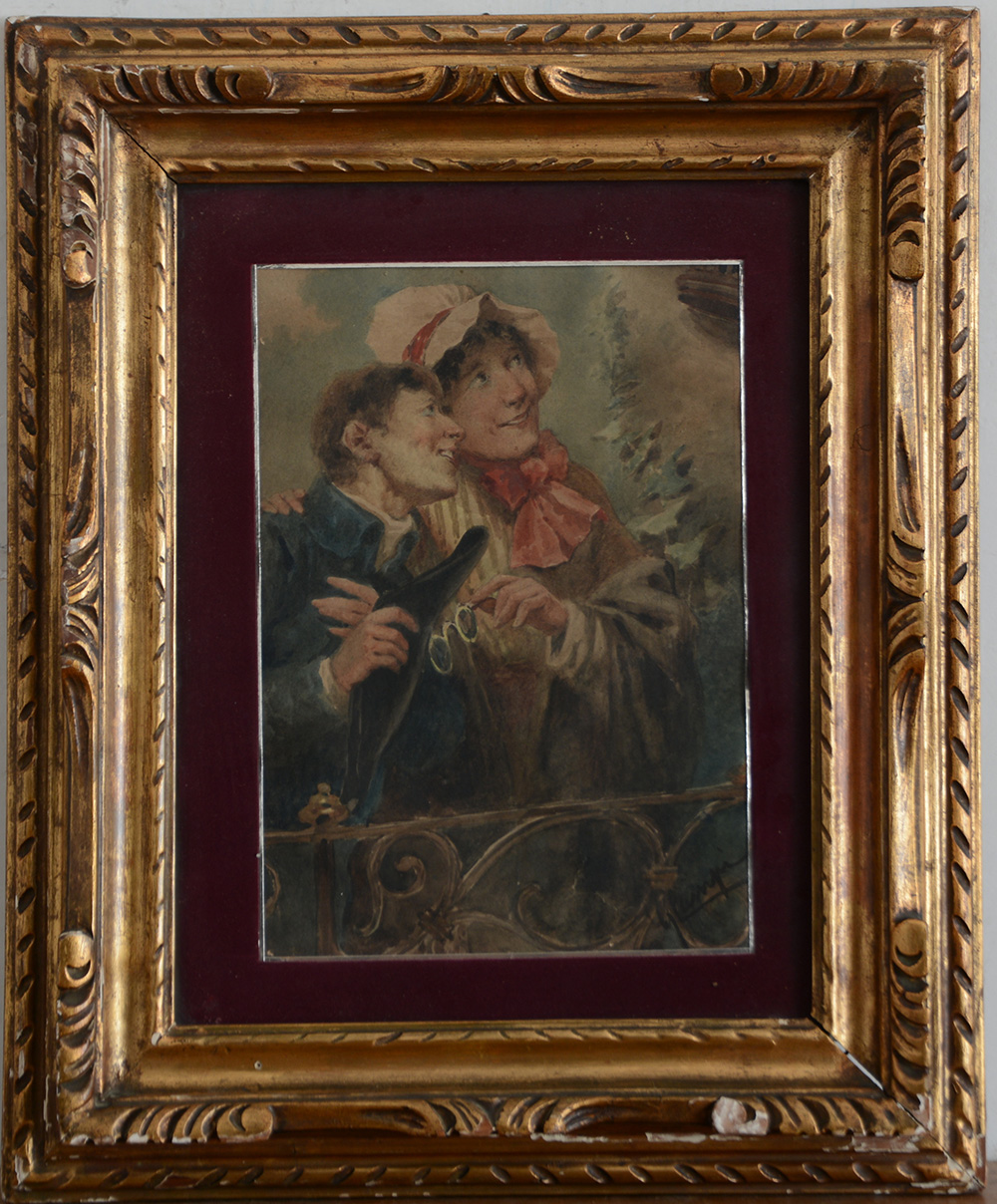Giacomo Campi (Milano 1846 - 1921)"Al balcone" acquerello su carta (cm 33x24)...