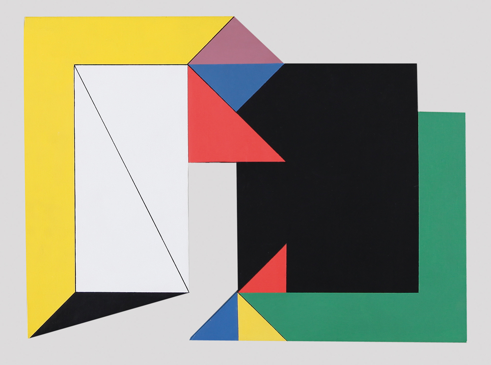 FRANCO REALE FRANGI Milano 1933 Due spazi opposti (positivo negativo), 1999 acrilico su tela su legno sagomato cm. 40x54,5; firme, anno, timbro dell'artista, titolo e tecnica al retro, opera senza cornice.