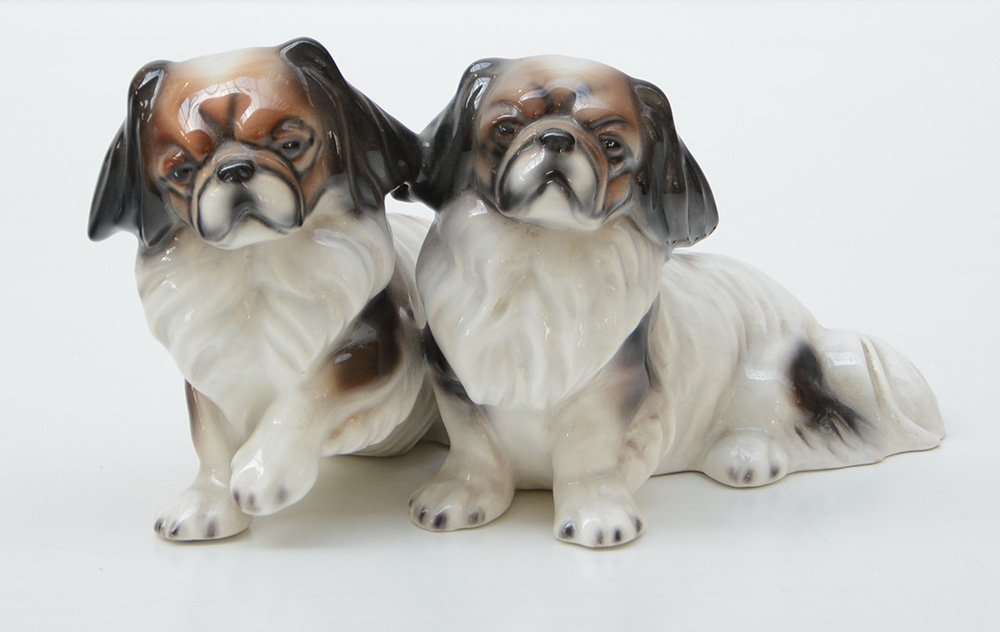 Manifattura tedesca - Goldshneider. "Pechinesi". Gruppo in porcellana policroma (cm 20x18) (lievi difetti)