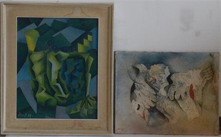 Lotto di tre dipinti e una tecnica mista di autori e misure differenti, in...