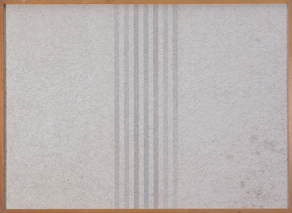 ELIO MARCHEGIANI Siracusa 02/09/1929 Grammature di colore, 1976 grammature di colore supporto intonaco cm. 65,5x91,5; firma, titolo, anno, tecnica, archivio dell'artista ed etichetta dello Studio Santandrea (MI) al retro.