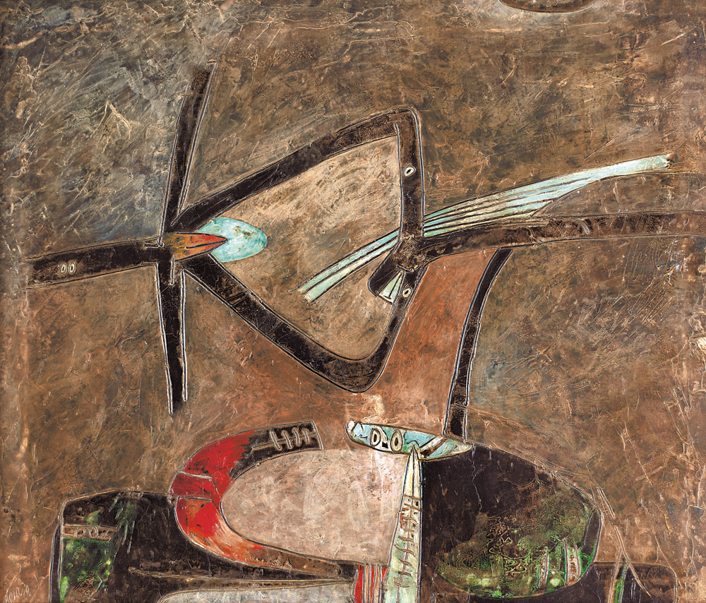 GIANNI DOVA Roma 08/01/1925 - Pisa 1991  Figure sospese olio su tela cm. 60x70, firma in basso a sinistra, titolo e firma al retro, pubblicato sul catalogo della mostra "Da Hayez a Morandi, l'ottocento e il novecento in collezioni private bustesi" a cura di Guido Ceriotti e Ettore Ceriani, tenutasi presso la Fondazione Bandera per l'Arte (Busto Arsizio) dal 7 ottobre al 10 dicembre 2006, pagina 135.