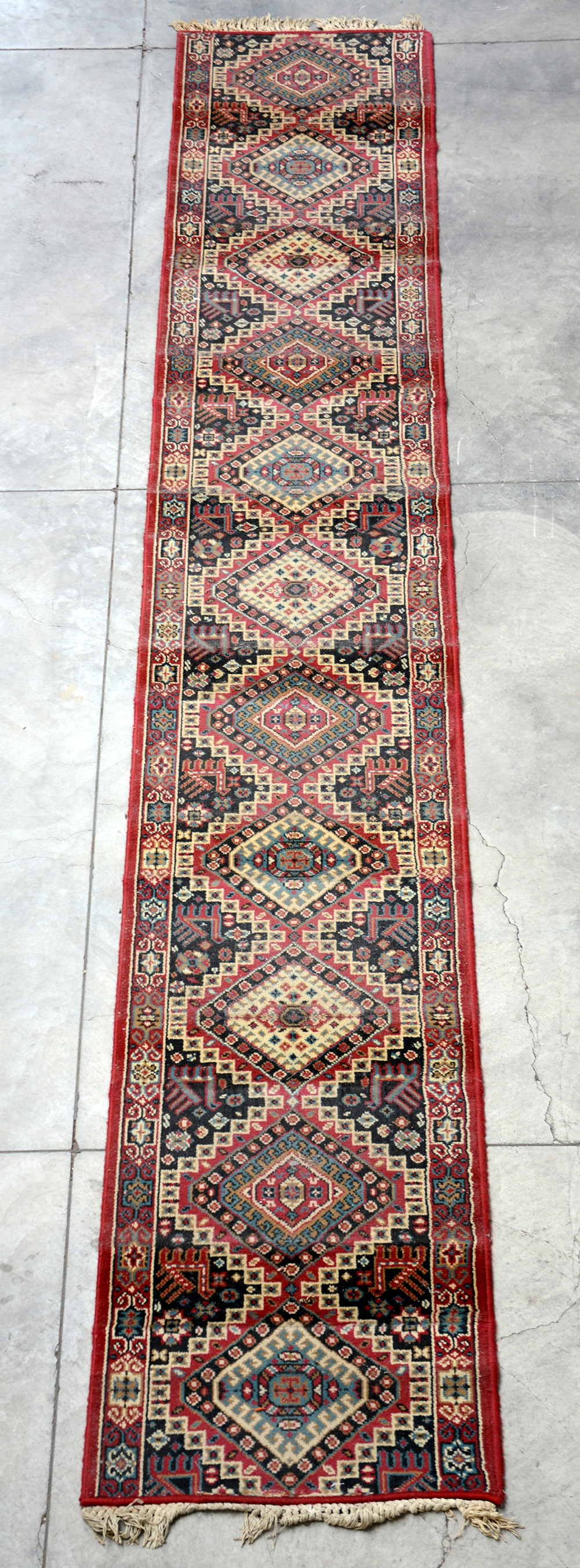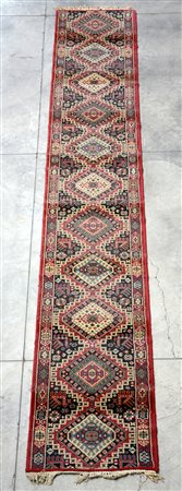 Tappeto passatoia meccanico con decoro caucasico (cm 397x66) (difetti)