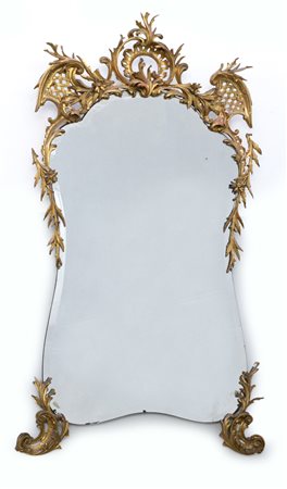 Specchio di forma sagomata decorato da antichi fregi applicati in legno...