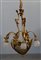 Lampadario in metallo dorato decorato a motivi vegetali, parte inferiore...