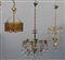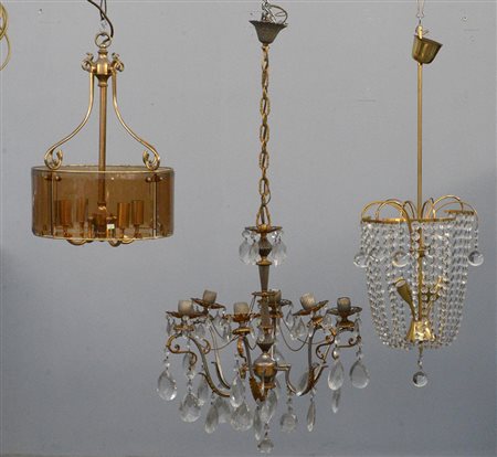 Lotto composto da tre lampadarietti diversi in ottone, metallo, vetro e vetro...