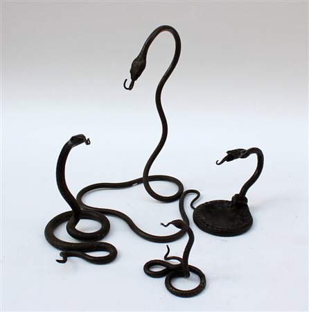 Lotto di quattro supporti per orologi in bronzo a forma di serpenti, misure...