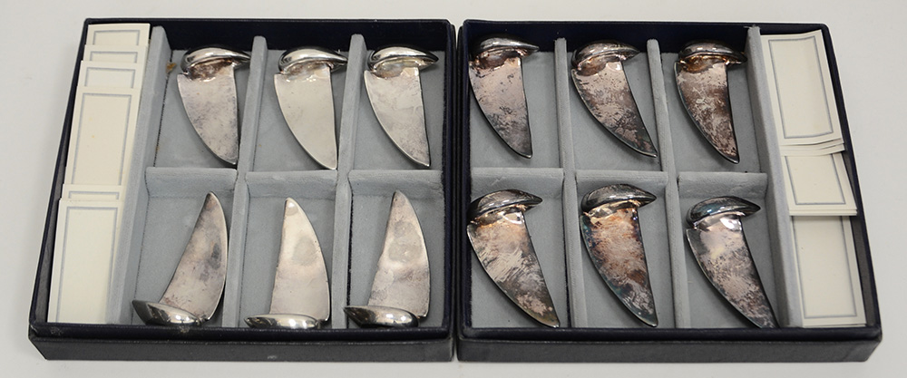 Dodici segnaposto ricoperti in argento a forma di vele (lievi difetti)
