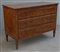 Comò lastronato in noce a tre cassetti filettati e intarsiati a motivi...