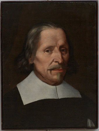 Scuola romana del secolo XVII "Ritratto di notabile" Olio su tela (cm 52,5x39,5) (restauri)