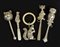 Gruppo di cinque sonagli in argento figurati ad animali, uno con presa in...