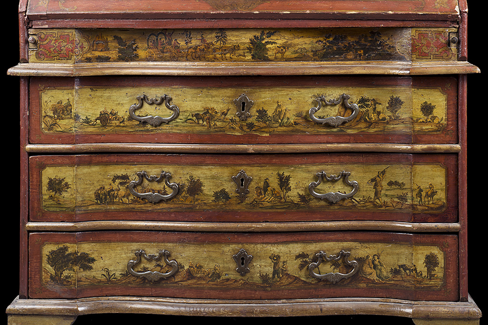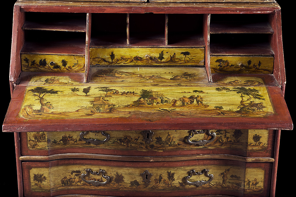 An "arte povera" bureau-cabinet. Veneto, 18th century (cm 110x236x54) (defects)