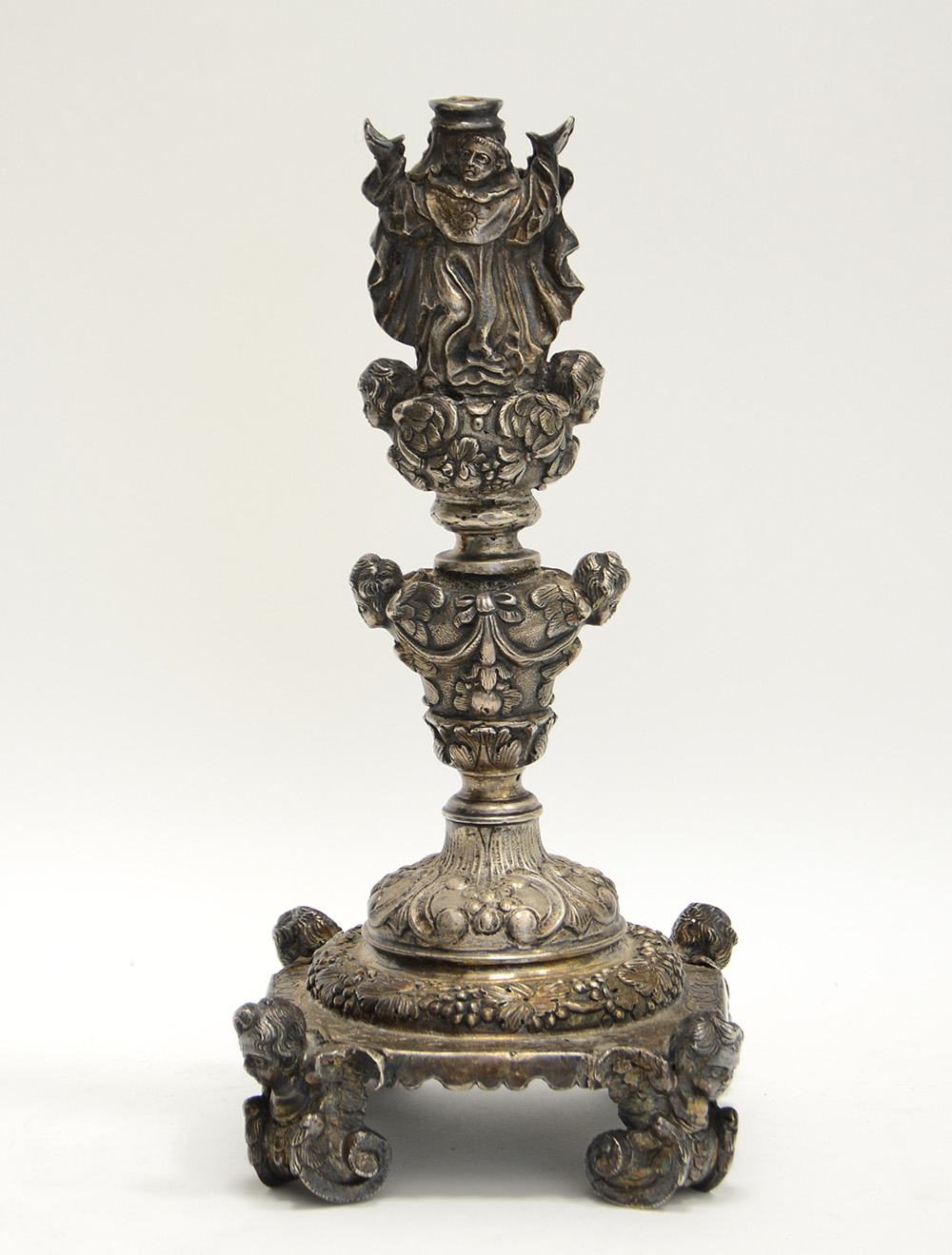 Lotto di due antiche basi in argento fuso. Secolo XVIII/XIX (difetti e mancanze)
