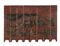 Paravento ad otto ante con decoro dipinto su fondo in lacca cinabro (difetti...