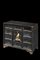 Monetiere in legno ebainizzato a due cassetti grandi e quattro piccoli decorati a verre peint. Anta centrale con pannello in scagliola decorato a volatile su ramo. Piedi a mensola. Secolo XVII (cm 60x46x26,5) (difetti e mancanze)