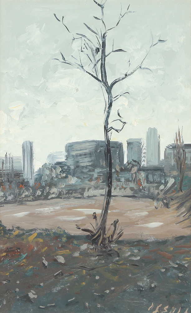 GIANCARLO OSSOLA Milano 1935 Dov'era il circo, 2002 olio su tela cm. 40x25,...