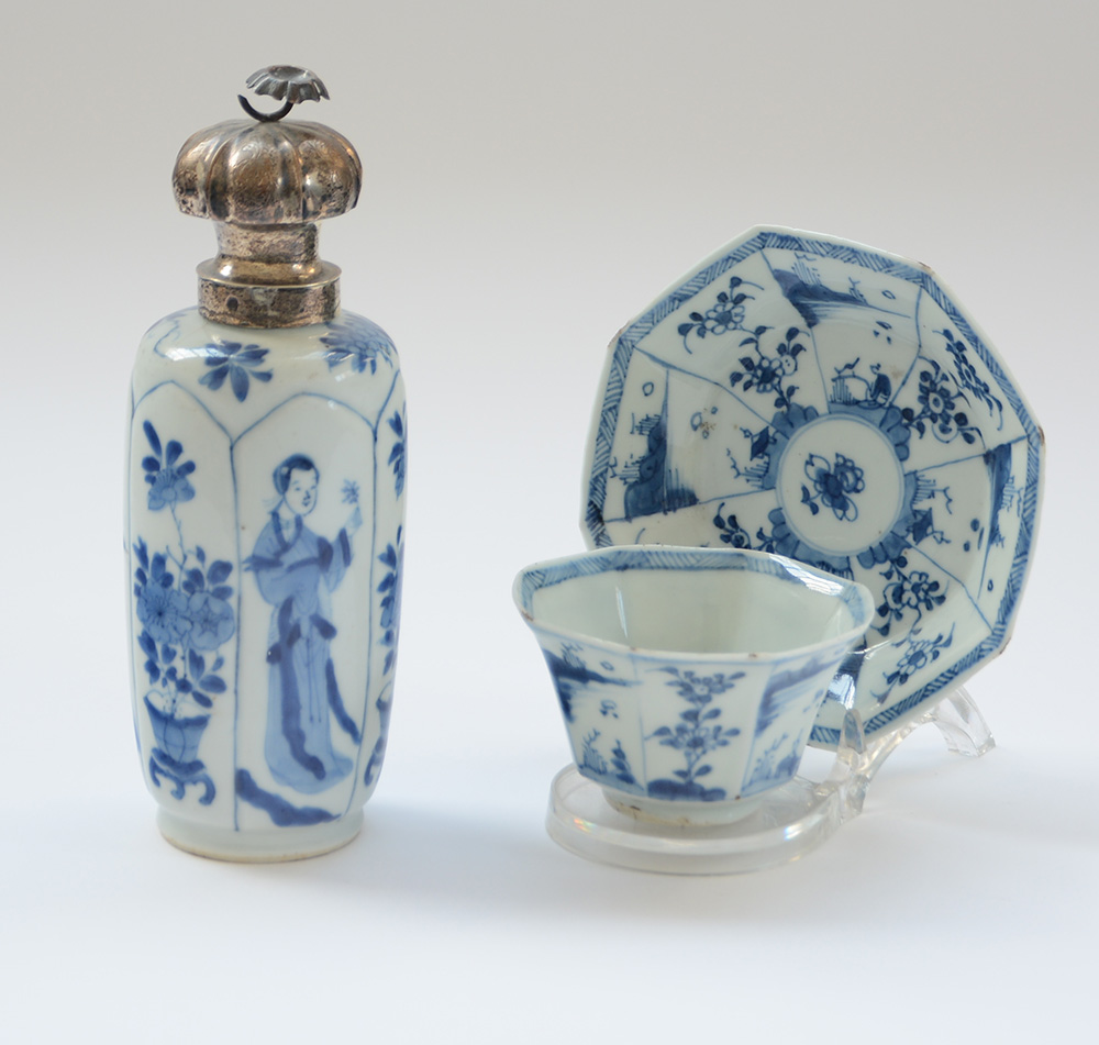 Vasetto con coperchio in argento unito ad una coppetta con piattino (h. max cm 18) (lievi difetti)