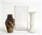 Lotto composto da un'anfora in terracotta smaltata, un grande vaso in vetro a forma di parallelepipedo e un vaso a balaustro in ceramica bianca (h. max cm 60) (difetti e mancanze)
