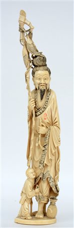 Okimono in avorio raffigurante pescatore con fanciullo (difetti)Giappone,...
