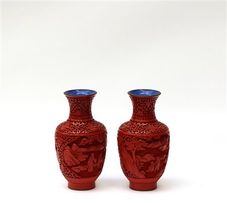 Coppia di vasetti nei toni del rosso (h. cm 17) (difetti)Cina, sec. XX