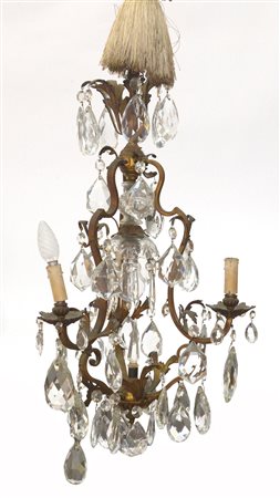 Lampadario in metallo con gocce in cristallo (h. cm 65) (difetti)