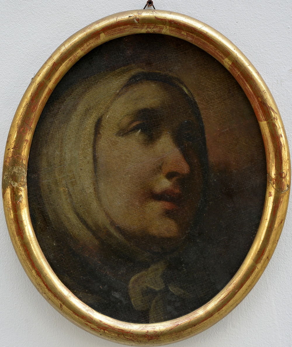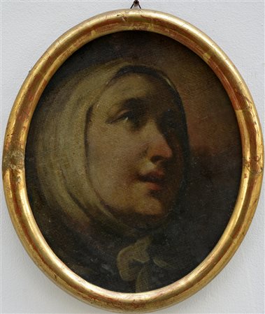 Scuola del secolo XVIII "Santa in estasi" frammento ad olio su tela ovale (cm 30x25) in cornice del secolo XIX (difetti e restauri)