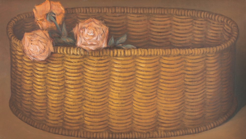 FABIO AGUZZI Milano 14/03/1953 Tre rose olio su tela cm. 40x70, firma e titolo al retro.