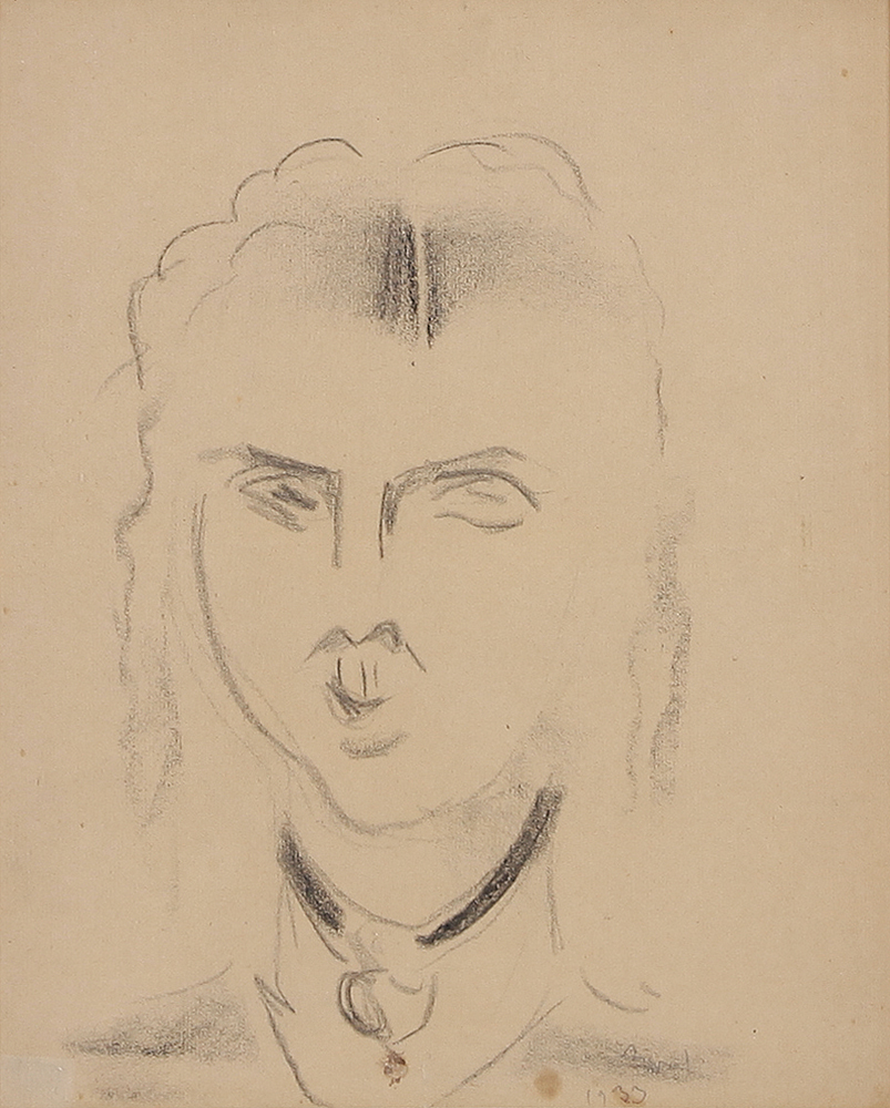 ASGER JORN Vejrun 03/04/1914 - Aarhus 1973 Ritratto, 1933 carboncino su carta cm. 33,5x28, firma e anno in basso a destra, opera registrata presso l'Archivio Asger Jorn come da e-mail di conferma del Museum Jorn allegata.