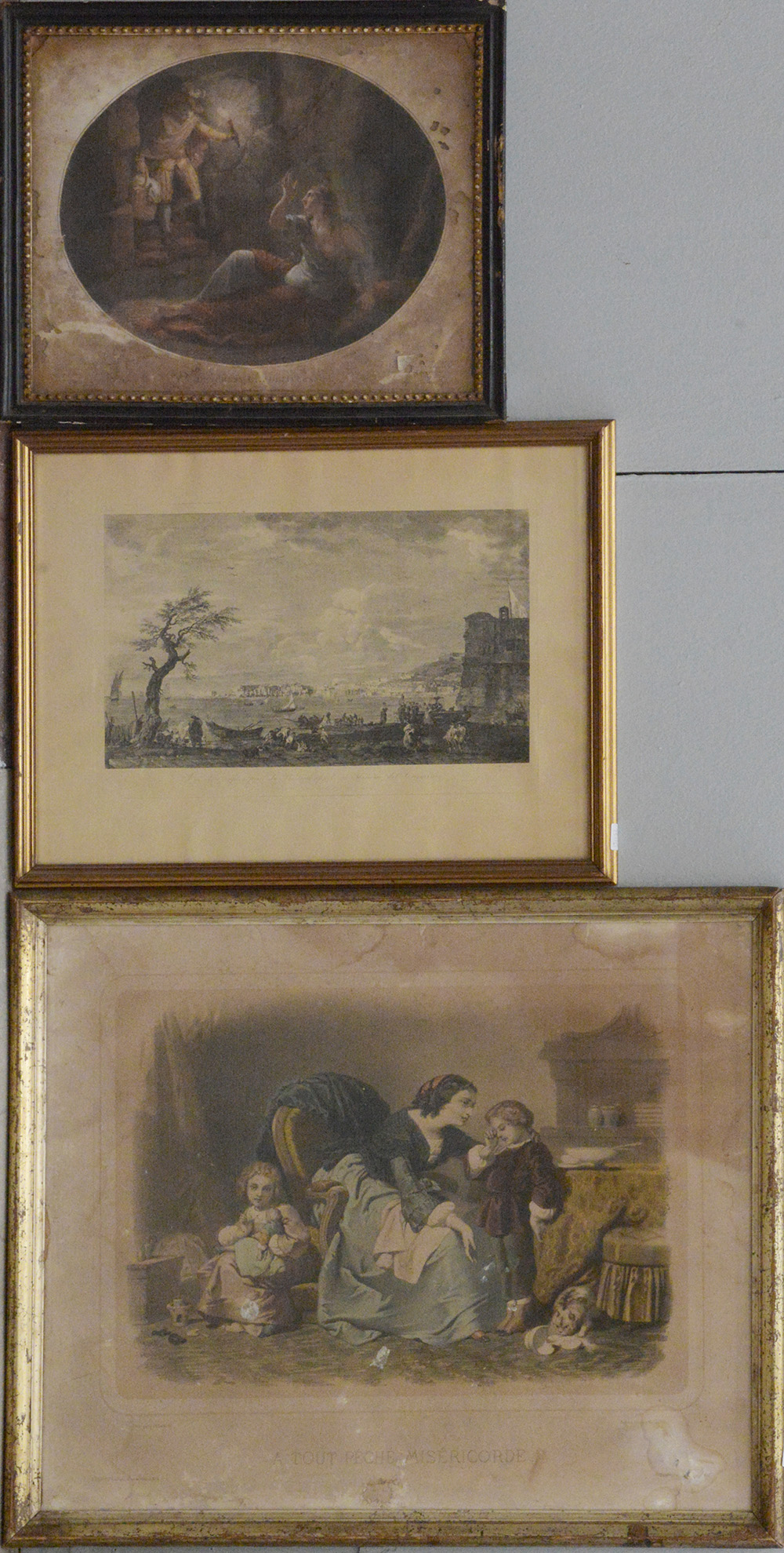 Lotto composto da tre incisioni del secolo XIX a soggetto diverso. In cornici (difetti)
