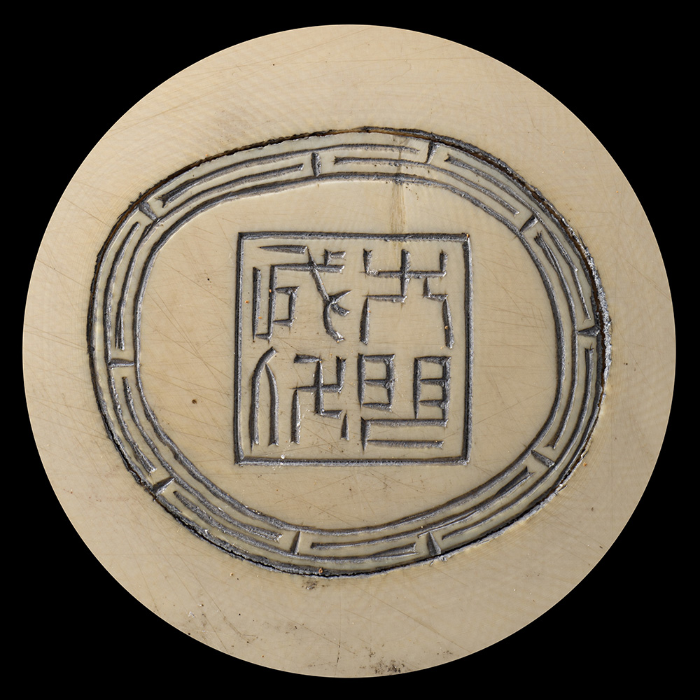 Gruppo in avorio raffigurante saggi che bevono il tè, marchio sul fondo (difetti e restauri)