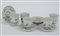 Set di cinque coppette con piattino in porcellana policroma in rosso ferro e...