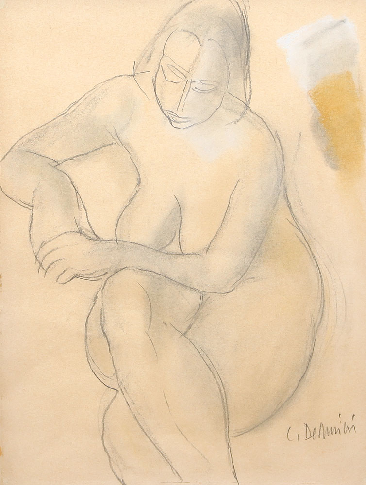 CRISTOFORO DE AMICIS Alessandria 30/06/1902 - Milano 23/04/1987 Nudo seduto matita e tempera su carta cm. 48x36, firma in basso a destra.