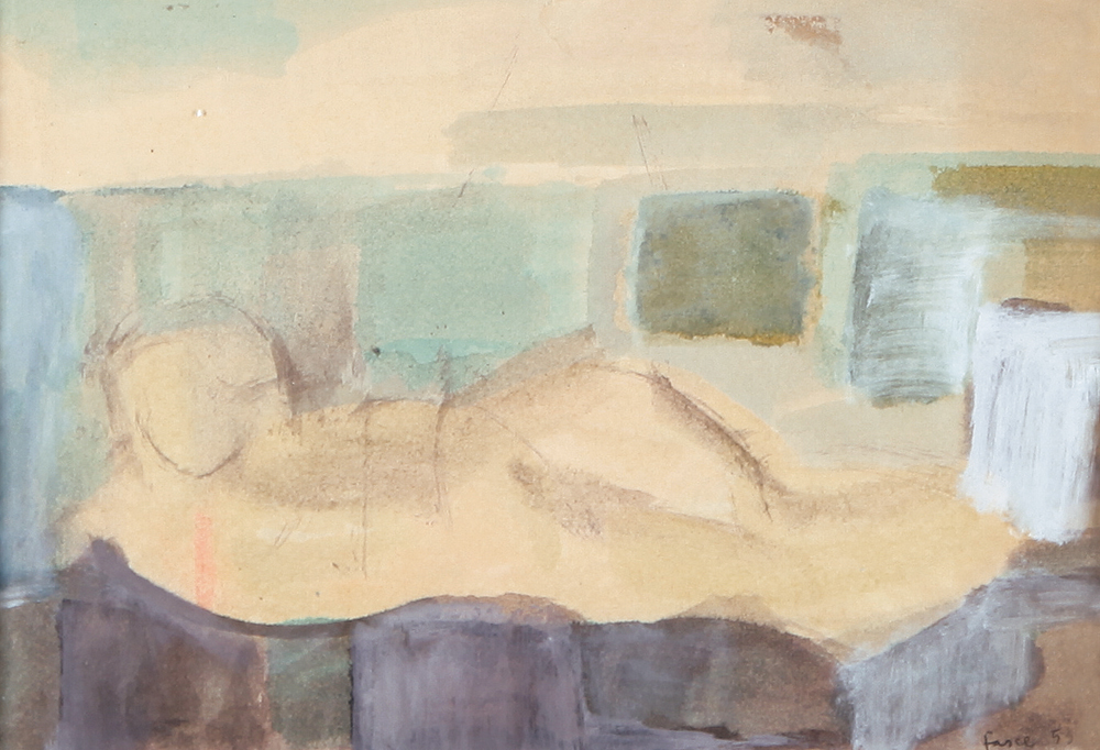 GIANFRANCO FASCE Genova 16/04/1927 Nudo disteso, 1953 acquerello su carta cm....