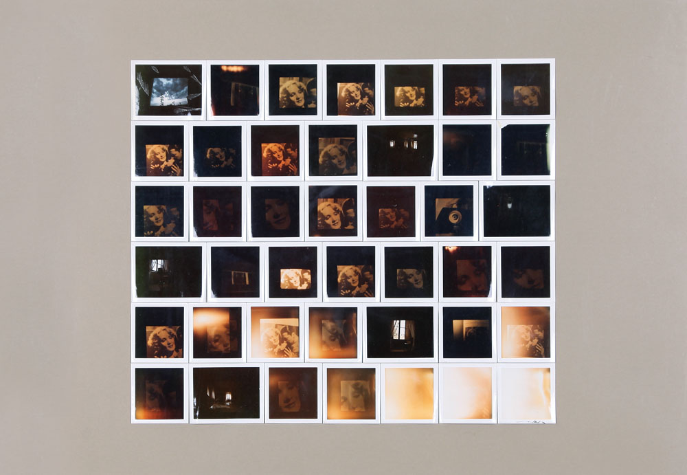 MARCO DEL RE Roma 1950  Dans le ouest de mon ame, (1975) sequenza di 42 polaroid cm.10.7x8.5 cad. dimensioni totale cm. 51x60 applicate su cartoncino 68x98, opera firmata su una polaroid in basso a destra, etichetta della Galleria Schwarz (MI) al retro.