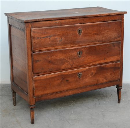 Antico comoncino a tre cassetti con piedi a obelisco rovesciato (cm...