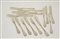 Lotto in argento composto da dodici coltelli da pesce e tre forchettine (gr 412) (difetti)