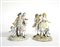 Lotto di due gruppi in porcellana policroma raffiguranti il gioco della mosca...