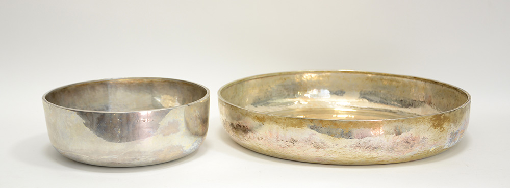 Lotto composto da due centrotavola in argento liscio (gr 2270) (difetti)