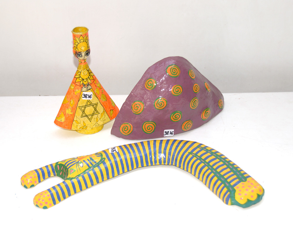 Lotto di tre souvenir messicani in cartapesta policroma firmati
